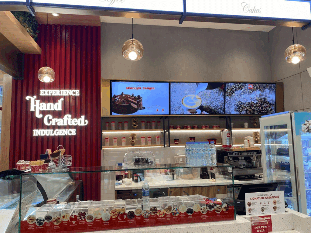- Freshly made waffle cones and brownie-based desserts prepared on-demand