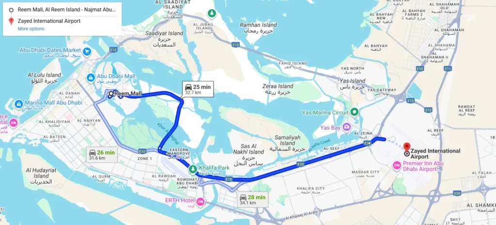 Situated just minutes from downtown Abu Dhabi, Reem Mall is easily accessible by car, taxi, or public transportation. Also, it takes only 25 minutes to reach the mall from the Zayed International Airport. With more than 6,800 parking spaces and state-of-the-art smart parking technology, your arrival and departure are effortless.