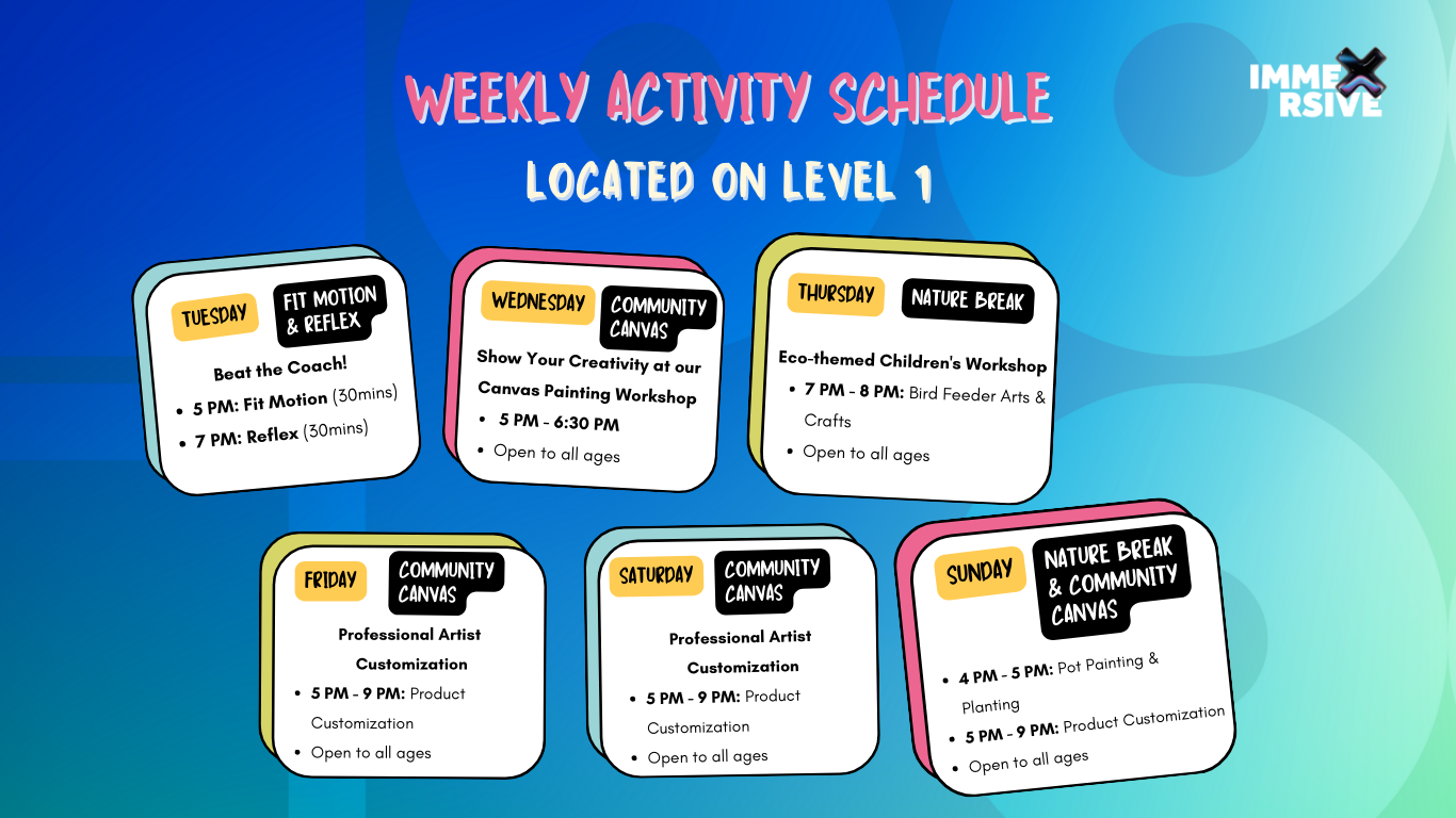 JOIN US FOR EXCITING IMMERSIVE ACTIVITIES ON LEVEL 1 – & THEY’RE ALL COMPLIMENTARY!!